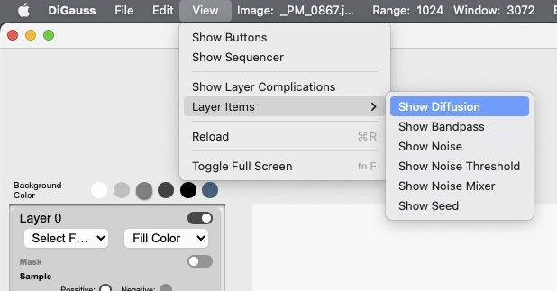 Enable Navigate to Menubar > View > Layer Items > Show Diffusion
