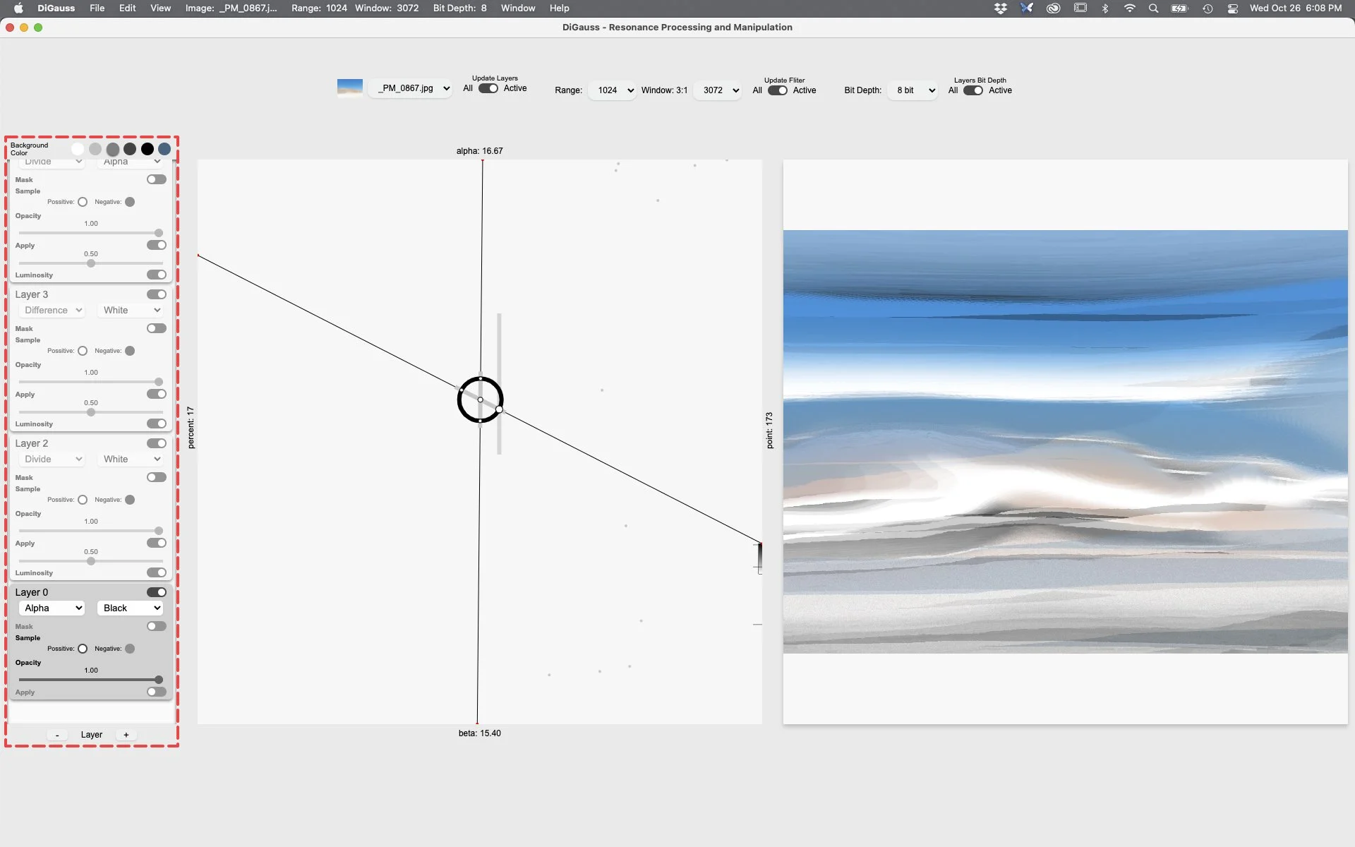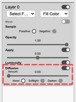 Slider defines the opacity of that layer’s image. Negative values produce an inverted result. Range -1.0 to 1.0. Default set to 1.0.