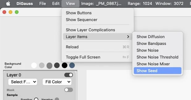 Enable Navigate to Menubar > View > Layer Items > Seed