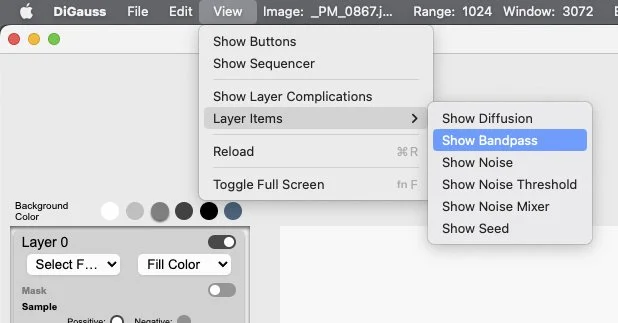 Enable Navigate to Menubar > View > Layer Items > Show Bandpass
