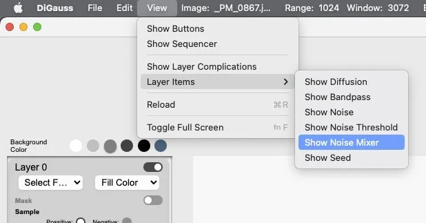 Enable Navigate to Menubar > View > Layer Items > Noise