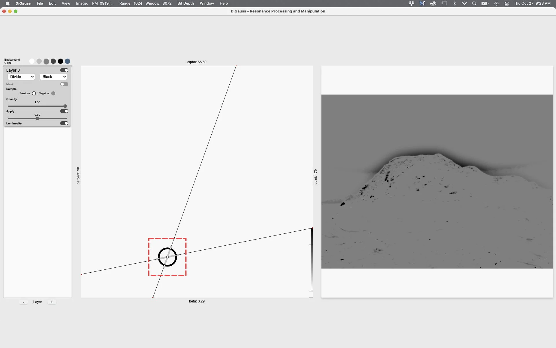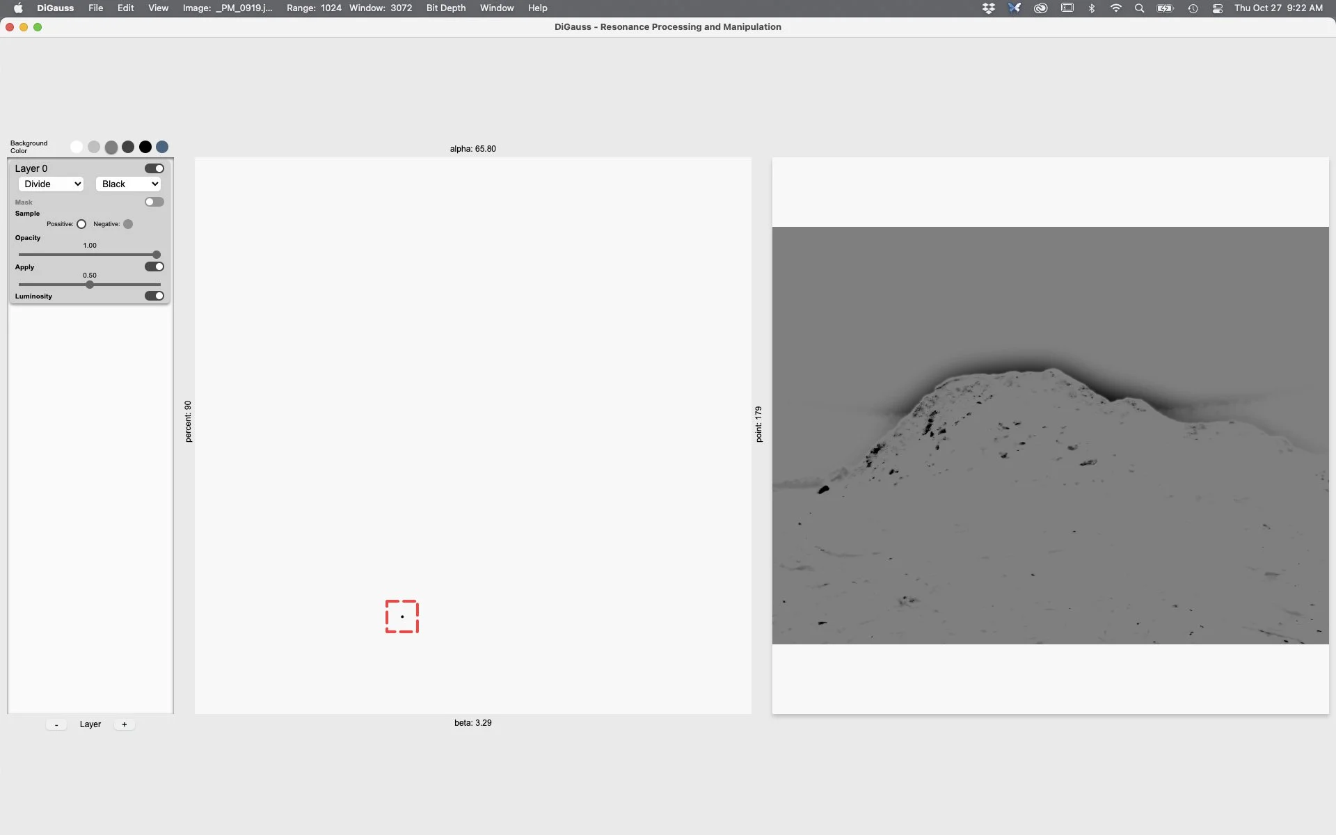 Once the image is loaded the application will automatically create a new layer in the Layer Window and frequency UI in the Frequency Selection Window.